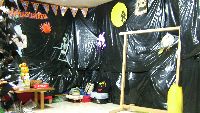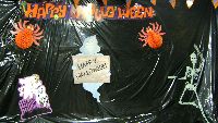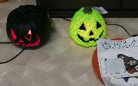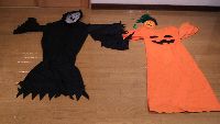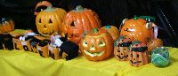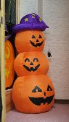 子供たちがさぁlさあドアーをノックして…… パンプキンの下にはお菓子の袋がたくさん。 | ![]() |