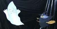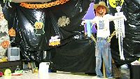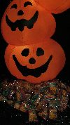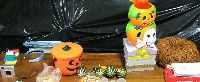 子供たちがさぁlさあドアーをノックして…… パンプキンの下にはお菓子の袋がたくさん。 | ![]() |