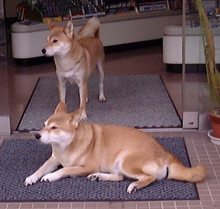 我が家の店先でくつろぐ親子です。手前が母親のリコ、奥が娘のアヤです。