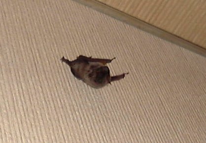 種類は不明ながらコウモリさん たまにやってきます。 音もなく滑るように飛びます。 捕まえると なかなか愛嬌のある顔です。 |
