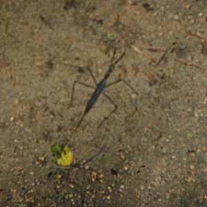 このあたりでは絶滅したか と思っていた水カマキリです。 倉庫の水たまりにおりました。 懐かしさのあまりコンビニへ カメラを買いに走りました。 |