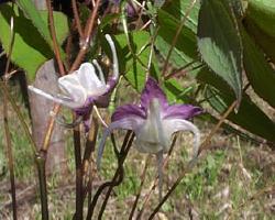 | 萼片が濃い桃紫、花弁が純白の超美変異。 その美しさは品種として栽培販売されている 「多摩の源平」や「一番星」を上回ると思いま す。 |