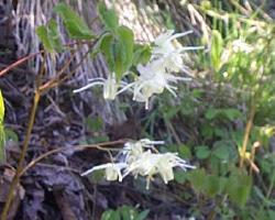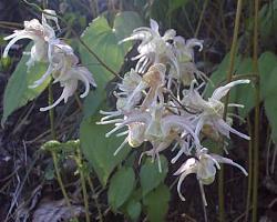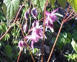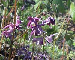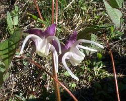 イカリソウは4つの花びら(外側の萼片と内側の花弁)からなり、花弁は距をのばし、その形が船のイカリに似ていることから名前が付いている。