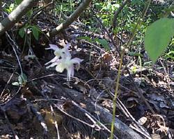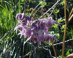 萼片はうっすらとしたピンクで、花弁と距は白で ある。 |