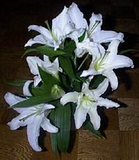 オリエンタル系の改良品種で真っ白な人気のある花です。