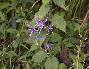 先がねじれる花びら(5つ)の紫花。キキョウの仲間です。。